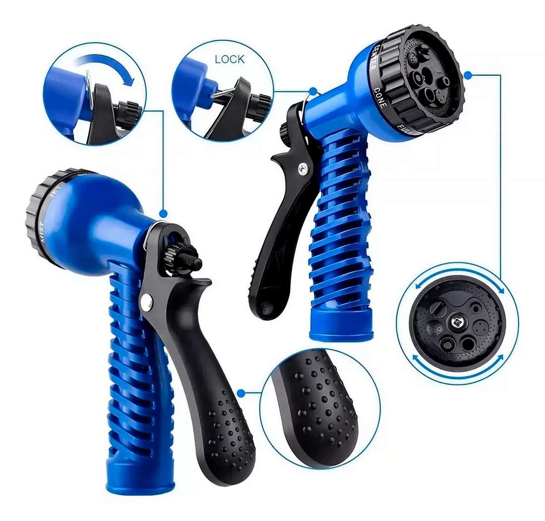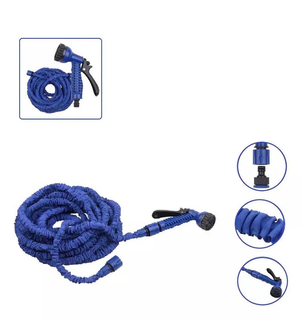 La manguera mágica expandible de 15 metros es la opción perfecta para la limpieza del hogar, jardines, patios y automóviles, ofreciendo practicidad y eficiencia. Su diseño retráctil permite que se expanda automáticamente con la presión del agua y se contraiga al cerrarla, facilitando su almacenamiento y uso. Ligera y resistente, no se tuerce ni se dobla, asegurando un manejo cómodo. Incluye un gatillo con 7 tipos de chorro para adaptarse a distintas necesidades, convirtiéndola en una herramienta versátil y funcional para el día a día.Ficha Técnica:Material: Plastico - GomaLongitud maxima : 15 metros / 75 FT** _Para defectos de fábrica o retractos: \_Por favor revise el producto apenas lo reciba y antes de usarlo. No aplican ley de retracto o defectos de fábrica luego de usar el producto. Se manejan máximo 5 días para reportar defectos de fábrica (por ejemplo, producto funciona mal, piezas faltantes, rotas, etc). Para hacer efectiva la devolución el producto debe devolverse con el empaque original, el cual debe estar en buen estado, incluir todos los documentos y las partes completas y sin daños.